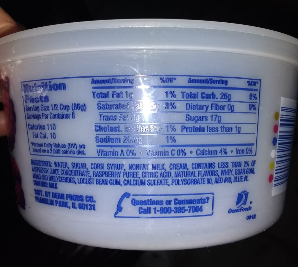 Per 100 grams, you’re in for about 190 calories, 4 grams of protein, 7 grams of saturated fat and 18 grams of sugar. High protein ice creams (think: Halo Top and FroPro), on the other hand, offer around 140 calories per 100 grams, 7 grams of protein, 3 grams of saturated fat and 8 grams of sugar.
