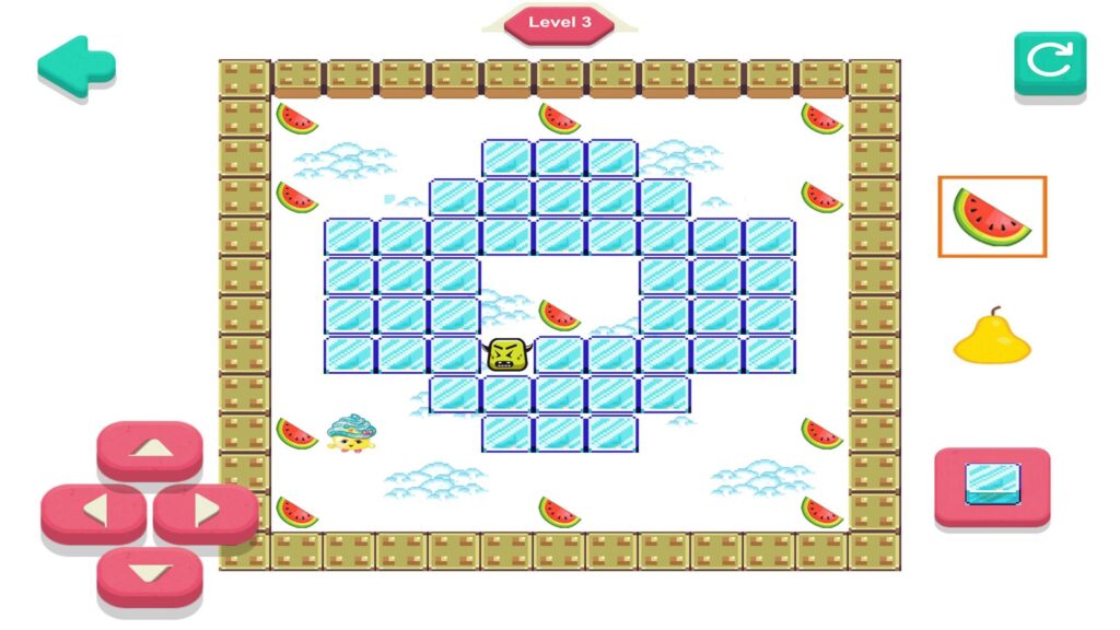 - Skab Midlertidige Stier: Brug dine isblokke til at skabe broer over huller eller for at nå isolerede frugter. Husk, at du kan ødelægge blokkene igen for at åbne din vej tilbage eller fange en forfølgende fjende.