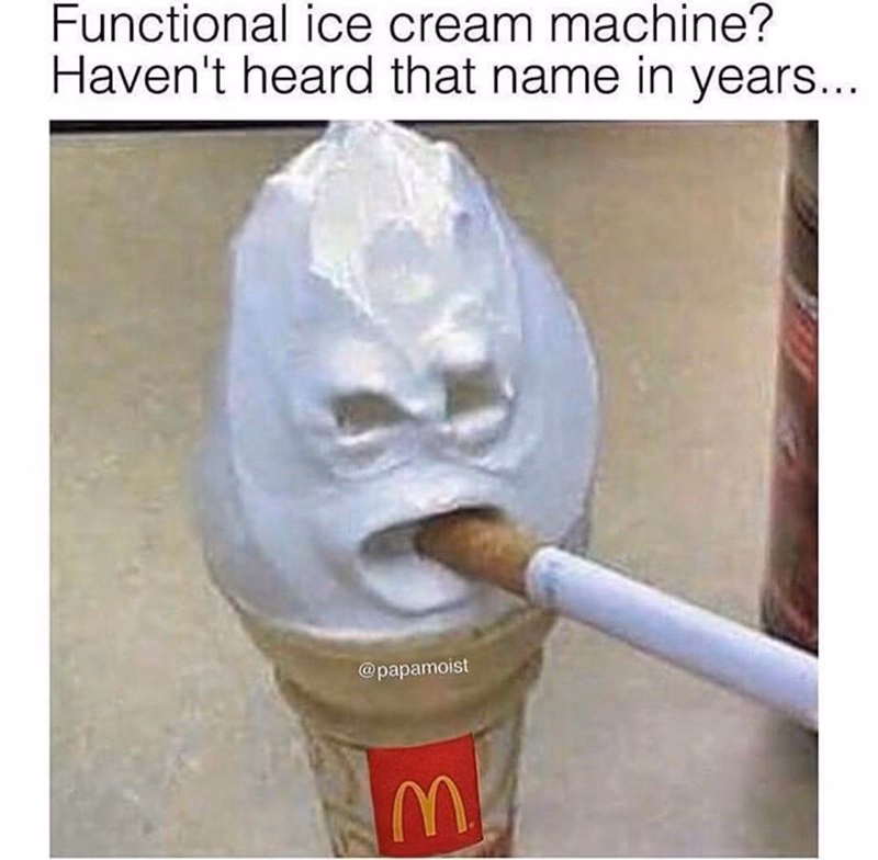 Tilbage i januar dokumenterede en McDonald's medarbejder rengøringsprocessen af en ismaskine på TikTok, hvilket chokerede seere, selvom denne proces ofte nævnes som årsagen til, at McDonald's medarbejdere siger, at maskinerne er nede. YouTuberen Johnny Harris dykkede dybt ned i fænomenet og konkluderede, at virksomheden, der laver maskinerne, Taylor, måske inciterer til defekte maskiner – den indtjener angiveligt en fjerdedel af sin omsætning fra servicebesøg.