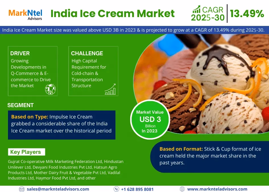 Udover vejret spiller en voksende middelklasse og en ændring mod vestlige og moderne livsstile en afgørende rolle. Med øget disponibel indkomst vælger flere forbrugere premium-is og eksperimenterer med nye, eksotiske smagsvarianter. Brands som Giani, Natural's, Keventers og Kwality Wall's har introduceret innovative smagsvarianter som tropiske frugter, belgisk chokolade og endda betelblade, hvilket tiltrækker en bred vifte af forbrugere.
