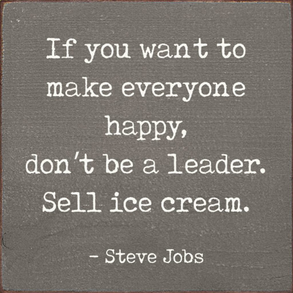 - Hvad betød Steve Jobs' citat "Hvis du vil gøre alle glade, skal du ikke være leder – sælg is!"?
