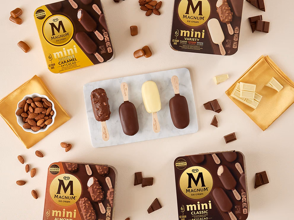 Magnum bruger forskellige chokoladetyper – mørk, mælk og hvid – for at tilbyde et bredt spektrum af smagsoplevelser og imødekomme forskellige præferencer. Hver chokoladetype har sin egen unikke smagsprofil og tekstur, der komplementerer forskellige isbaser og tilføjer en ny dimension til isoplevelsen. Ved at variere chokoladen kan Magnum skabe en række produkter, der appellerer til forbrugere, der foretrækker alt fra intense, bitre noter til søde, cremede eller vaniljeprægede smage. Det handler om at give valgfrihed og sikre, at der er en Magnum til enhver smag og lejlighed, samtidig med at man opretholder den høje kvalitetsstandard, som brandet er kendt for.