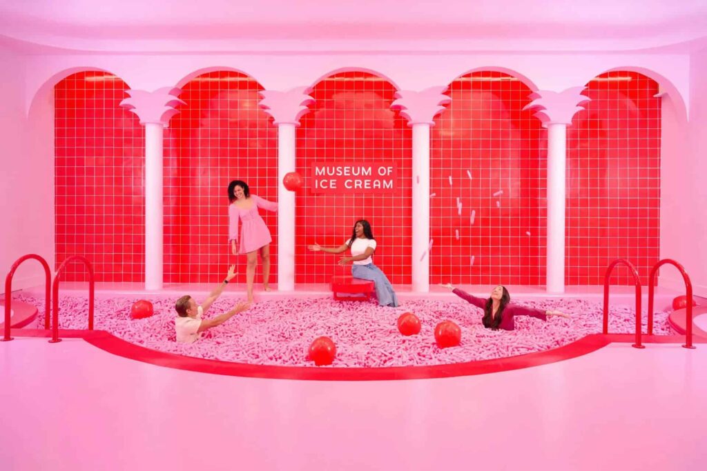 Sprinkle Pool er uden tvivl højdepunktet i Museum of Ice Cream! Som den største pool af sin art i verden lover den masser af sjov og fantastiske fotomuligheder. Inden du træder ind, bliver du bedt om at deponere dine tasker, løse genstande og sko i et dedikeret område. Når man ser på poolen, vil man bestemt ikke tabe noget i den!