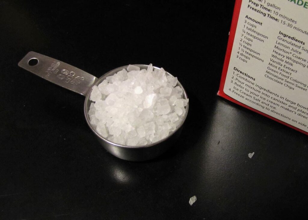 - Brug kun hvad du behøver: Beregn den rigtige mængde stensalt til din specifikke opskrift og ismaskine, og undgå at bruge for meget. Mere salt betyder ikke nødvendigvis hurtigere frysning efter et vist punkt, og det kan være spild.
