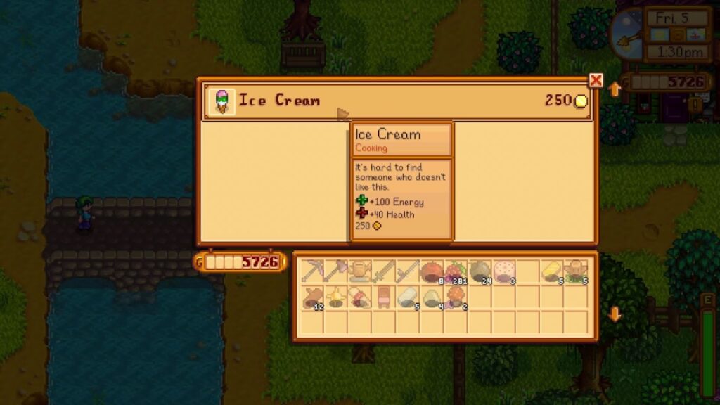 Beskrivelsen af Isdessert i spillet er mundvandsdrivende: "Vaniljeis dækket af varm chokoladesauce og toppet med et kirsebær." Dette lyder som den perfekte afslutning på enhver dag på gården.