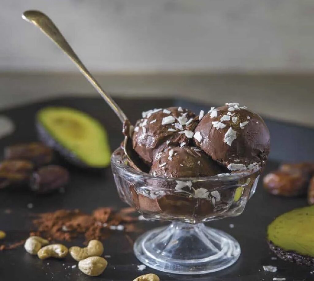 Smagsmæssigt vil den rå kakao og dadler sandsynligvis dominere smagsprofilen, hvilket resulterer i en rig, chokoladeagtig is med en subtil sødme og en uventet cremethed fra avocadoen. Det er usandsynligt, at den vil smage markant af avocado; snarere vil avocadoen bidrage med sin neutrale base og tekstur, hvilket tillader de andre ingredienser at træde frem.